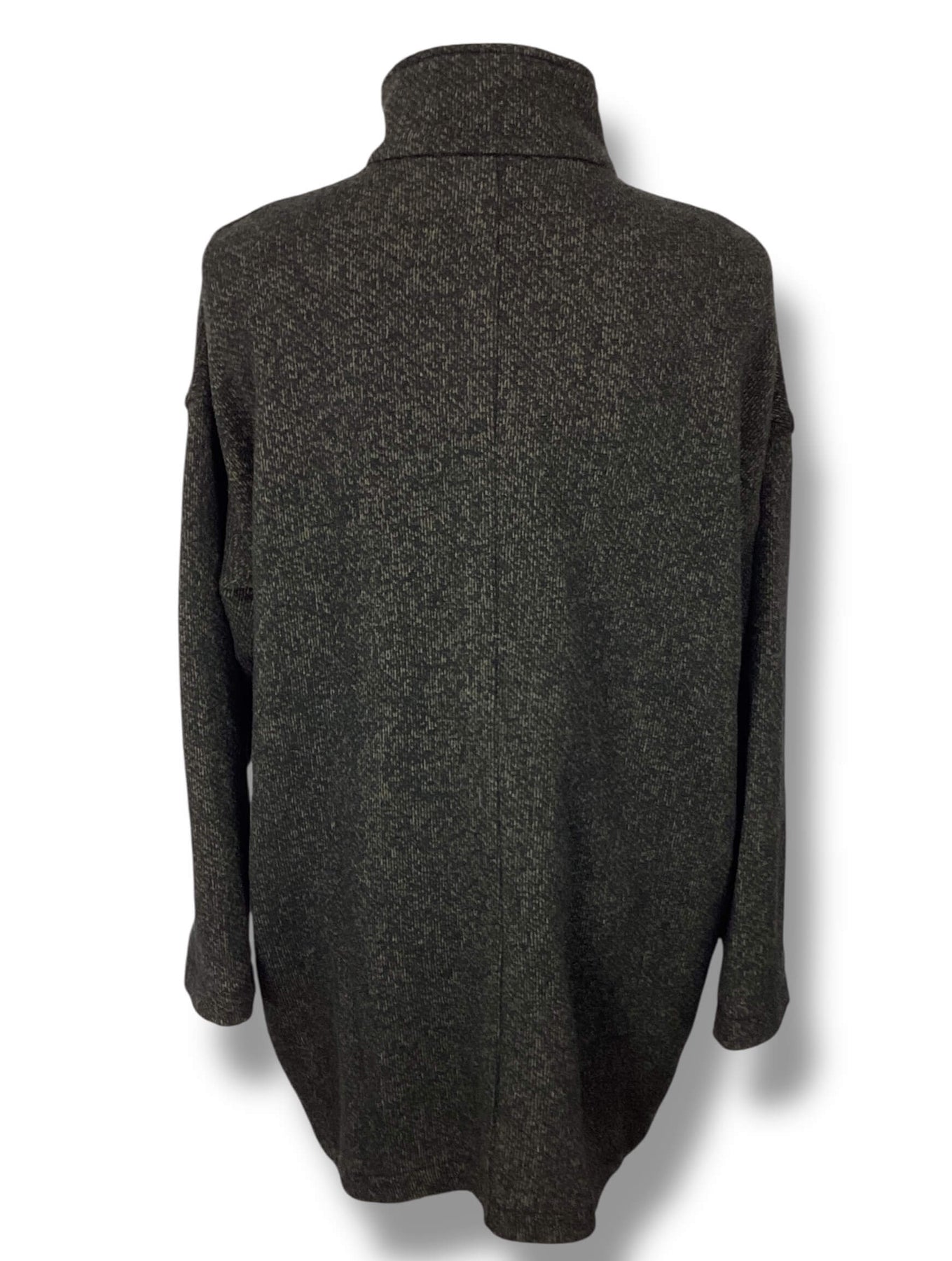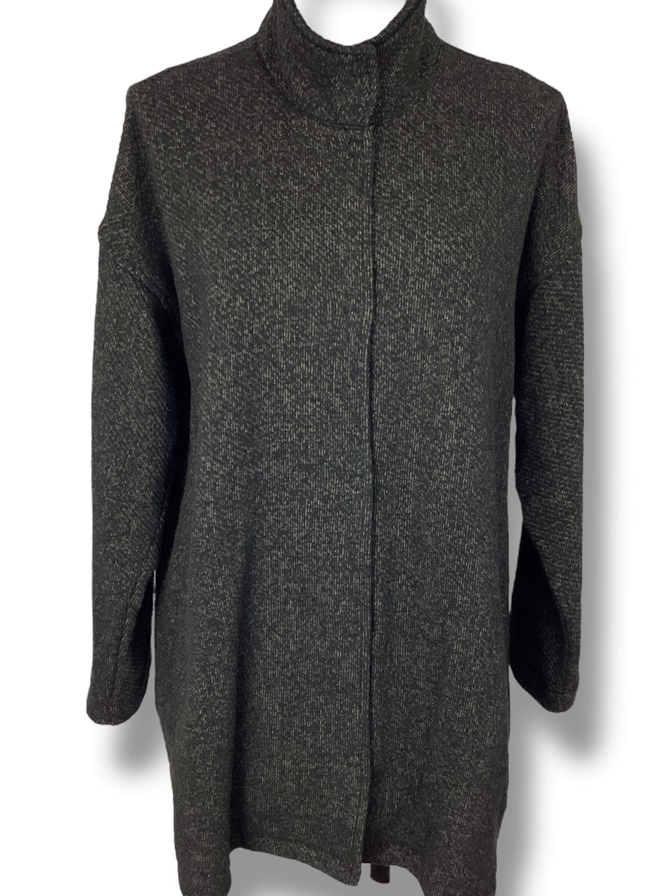 Eileen Fisher Black Brown Terry Cotton Jacket size Large Stand Collar Pockets