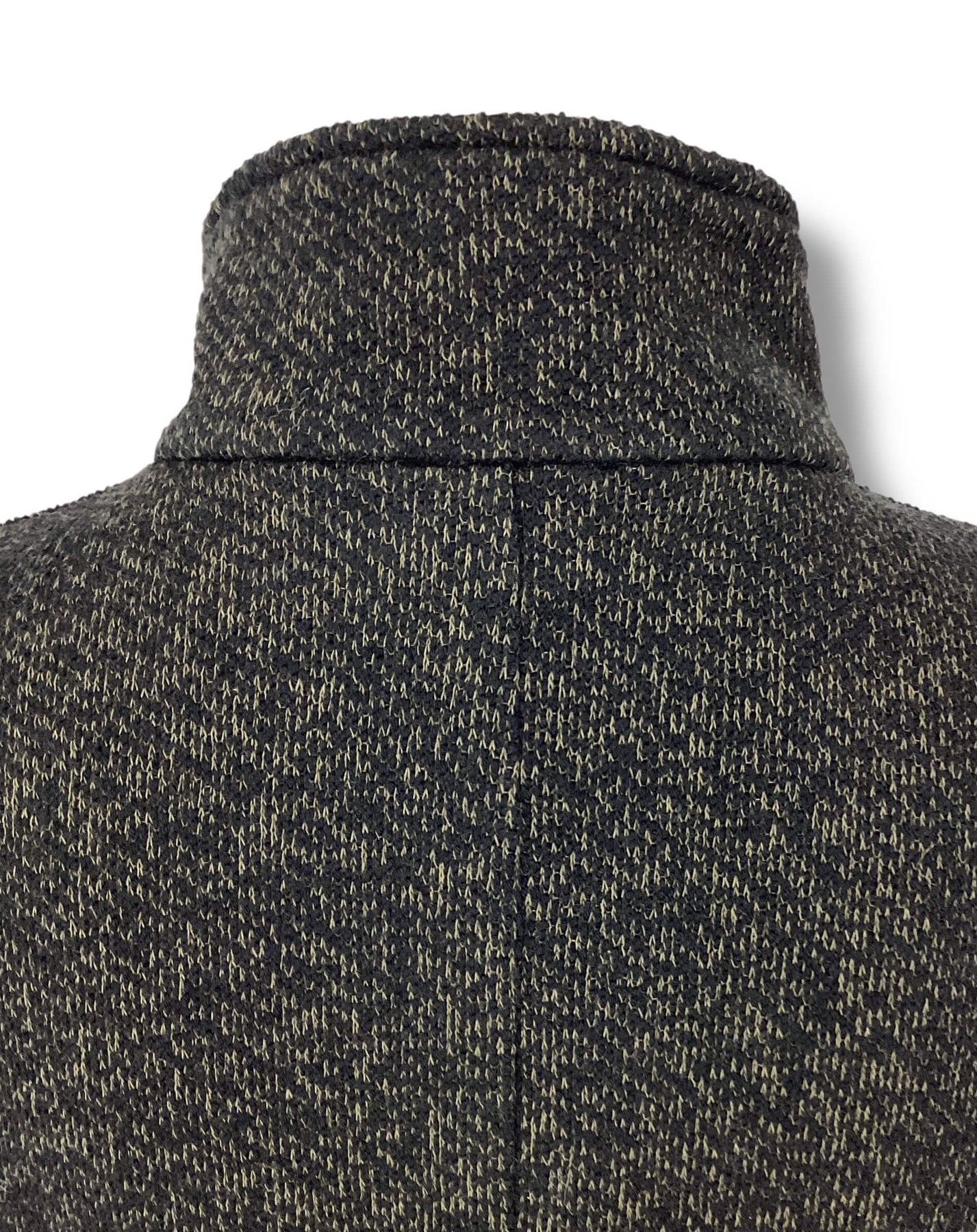 Boxy fit, snap front coat with stand up collar. Welt pockets, center back seam and drop shoulders. Like new condition.