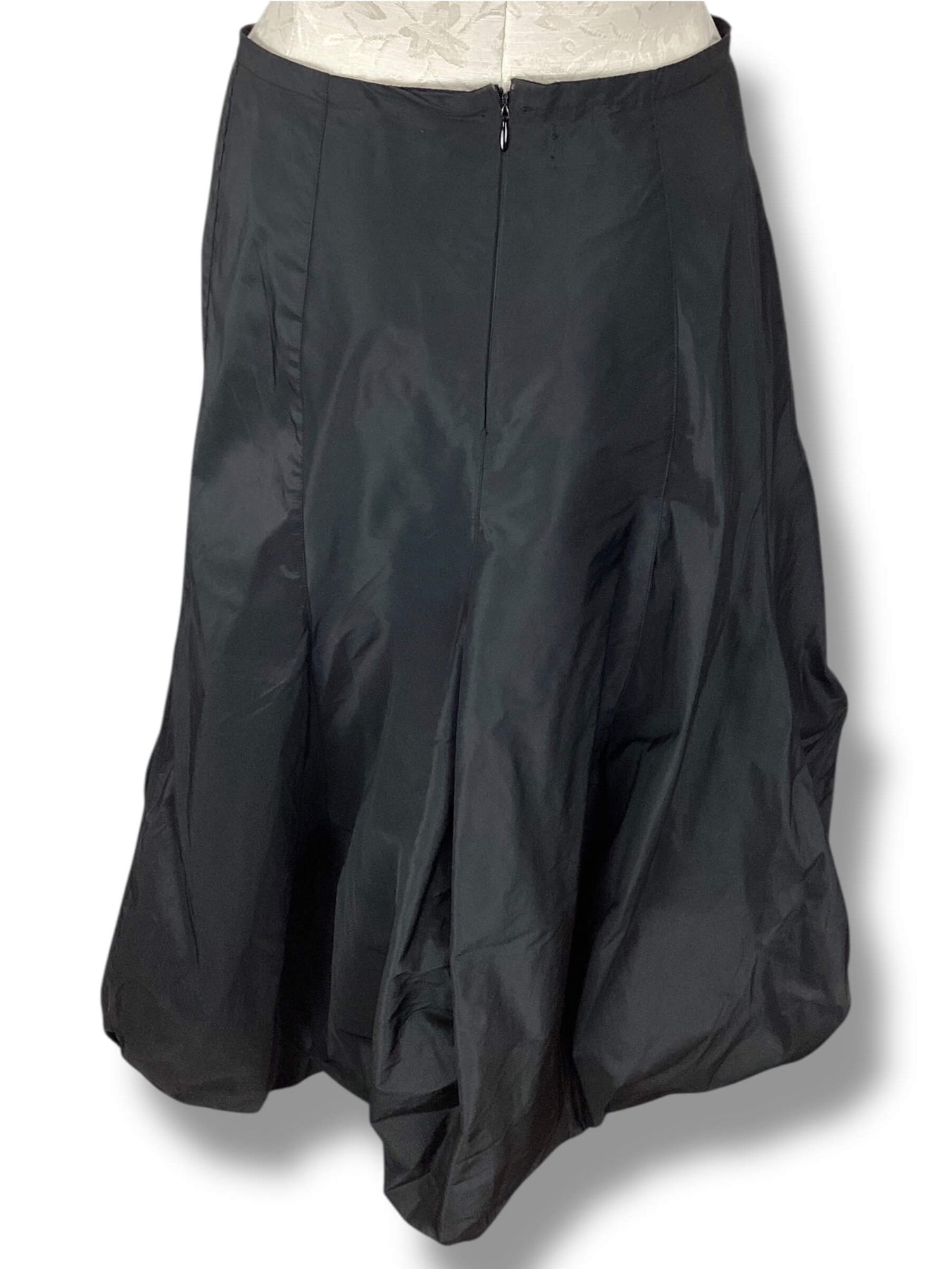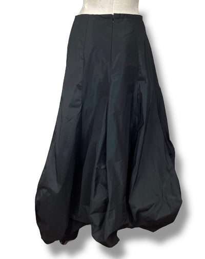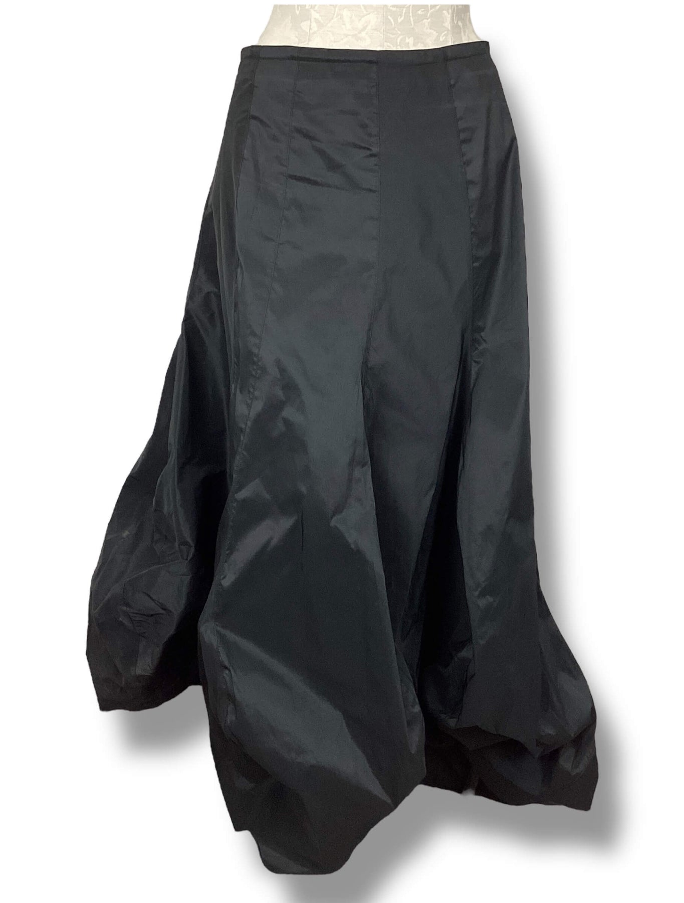 Stunning maxi taffeta skirt from avant garde designer. Tailoring at bottom gives ballooned appearance. Some marks from dust, etc. Spot clean or dry clean.