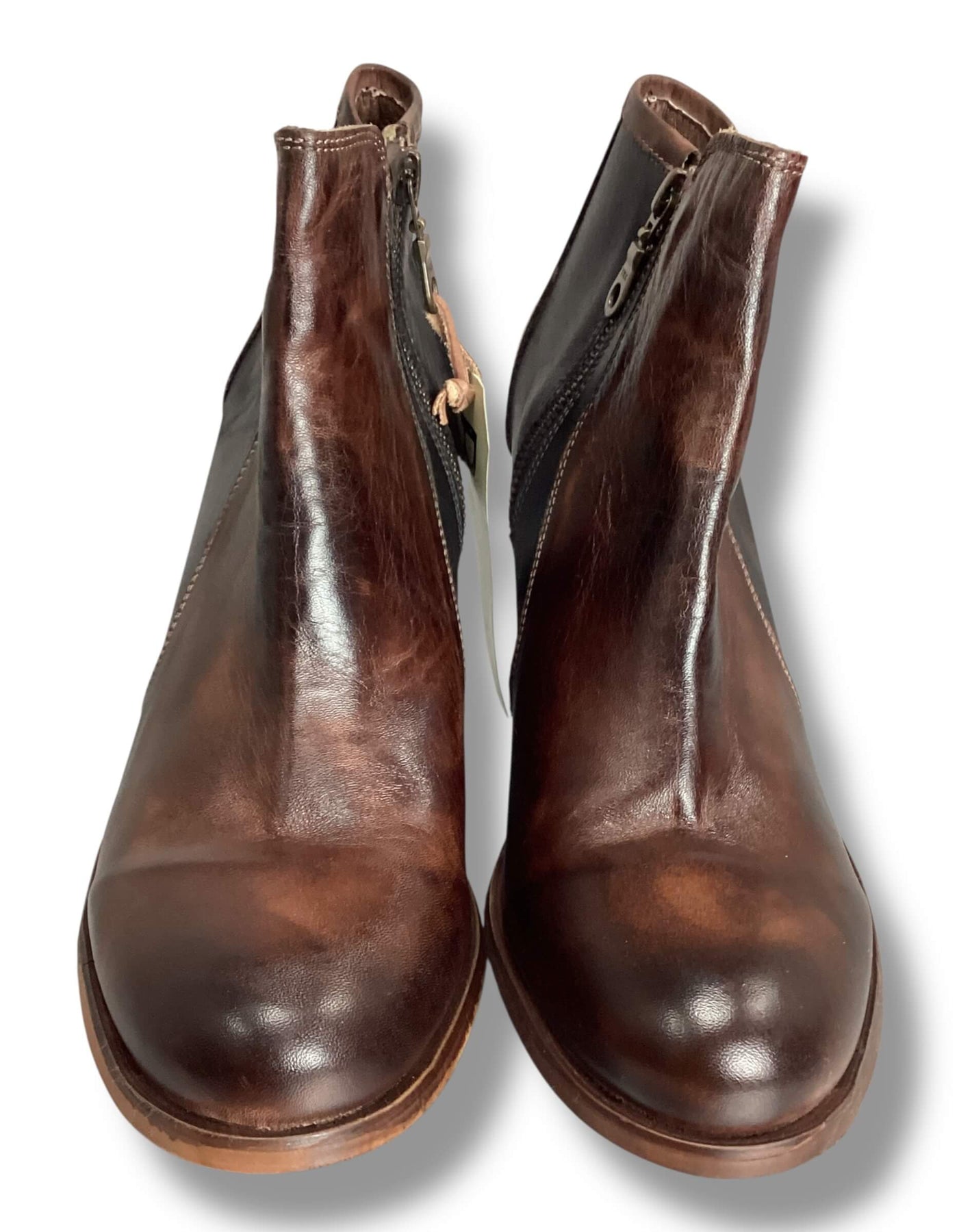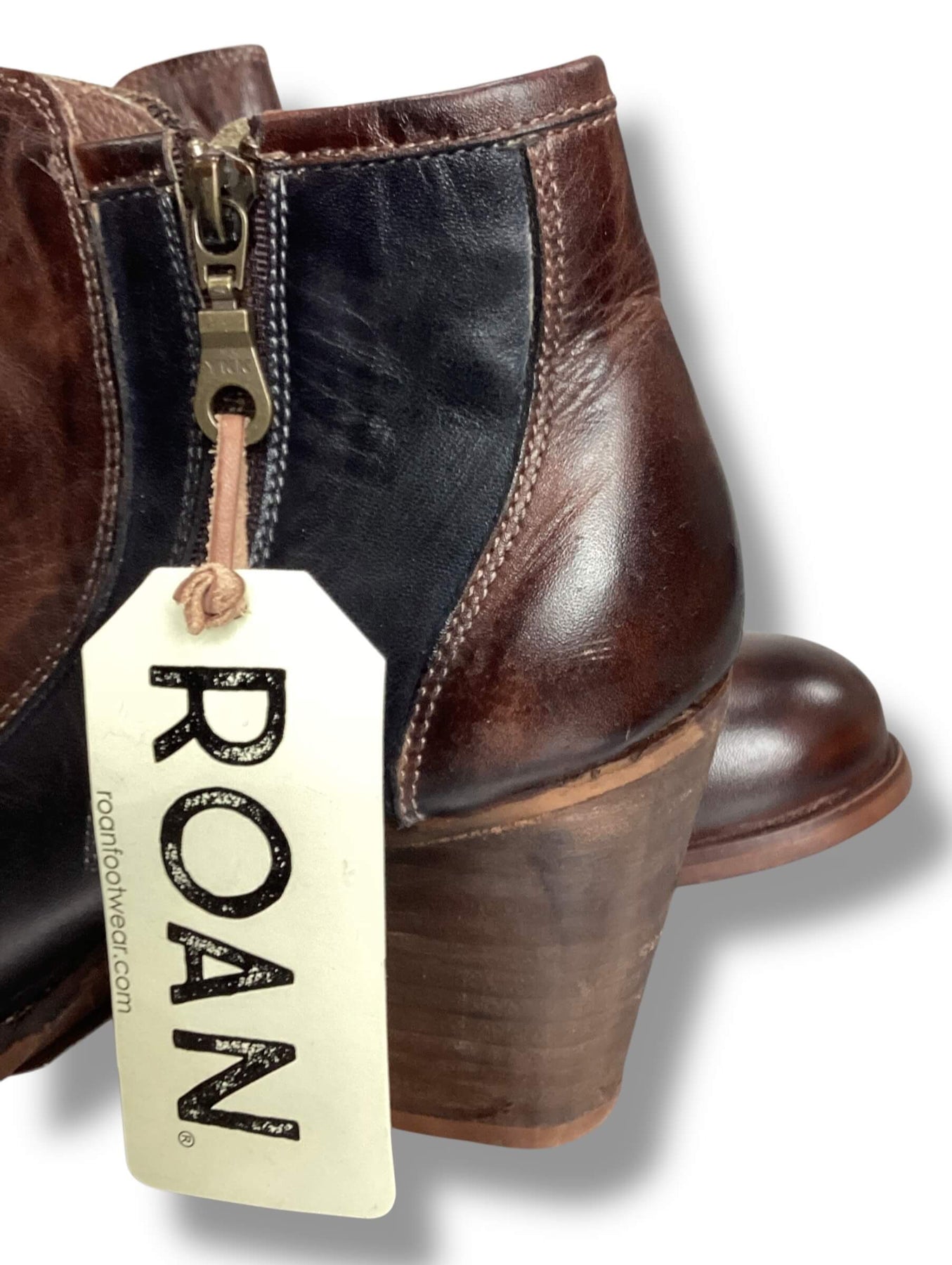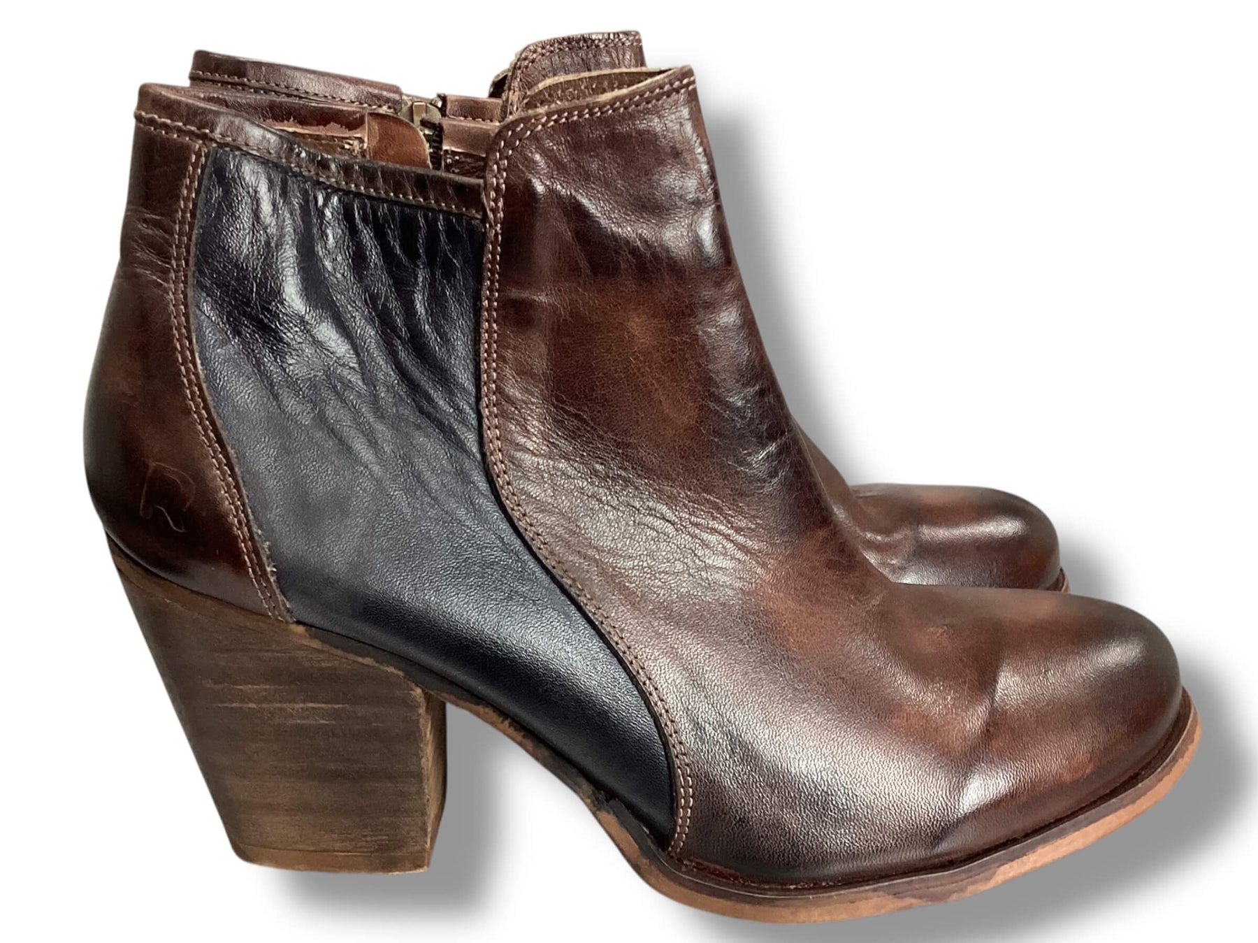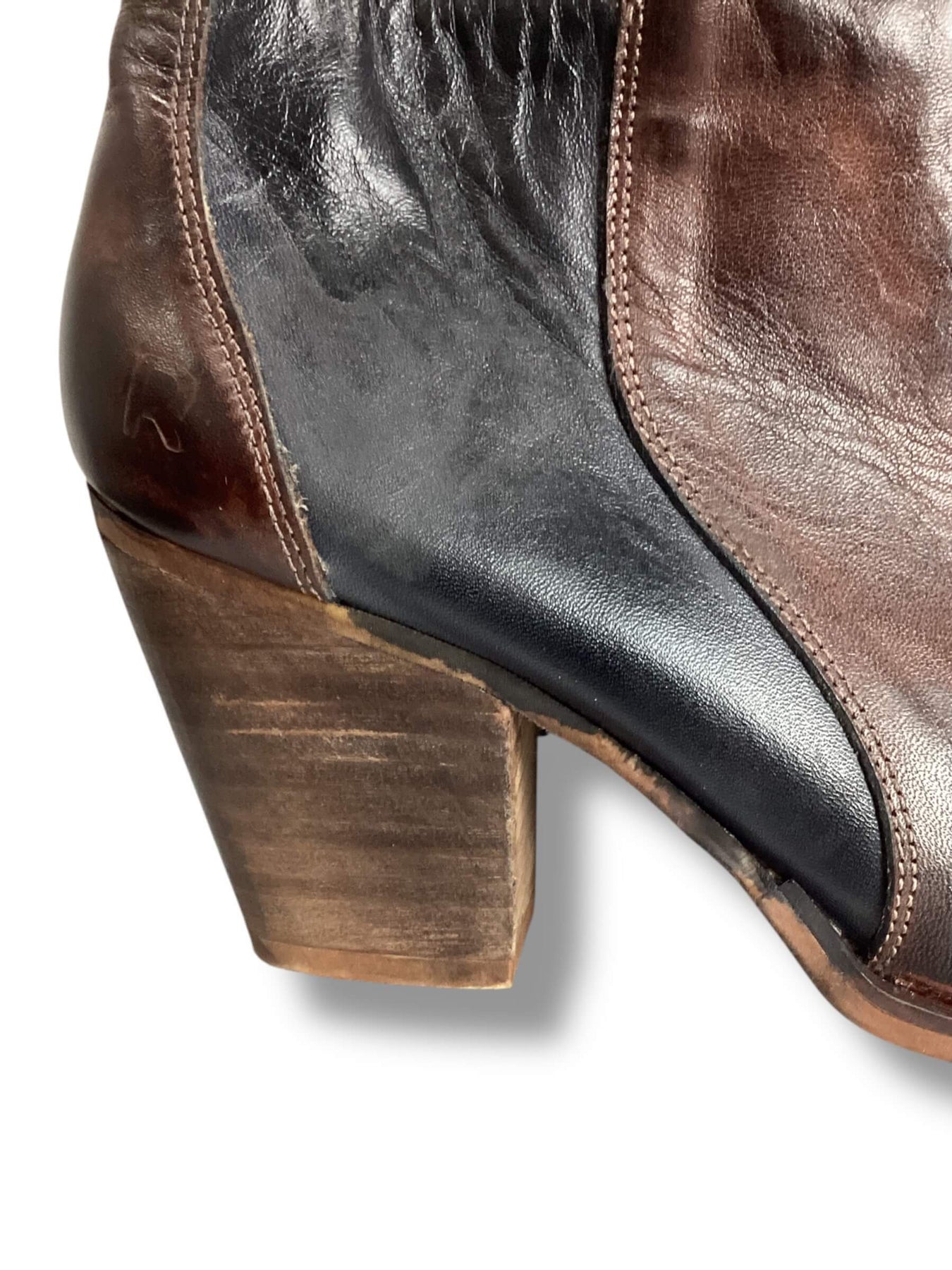 Roan Size 10 Brown Black Leather Heeled Booties ankle boots