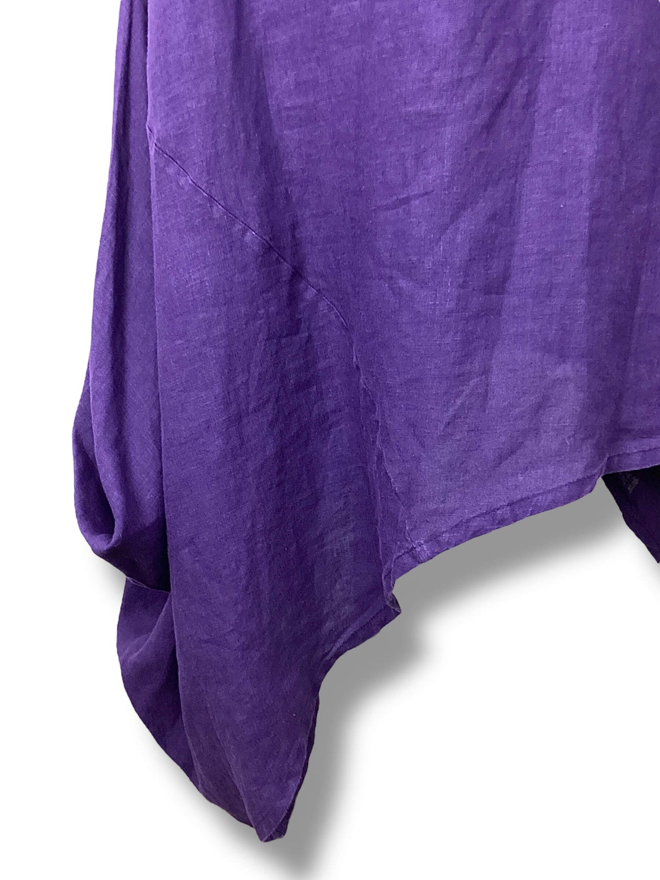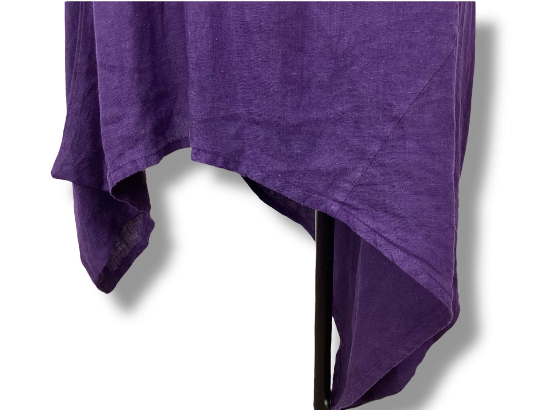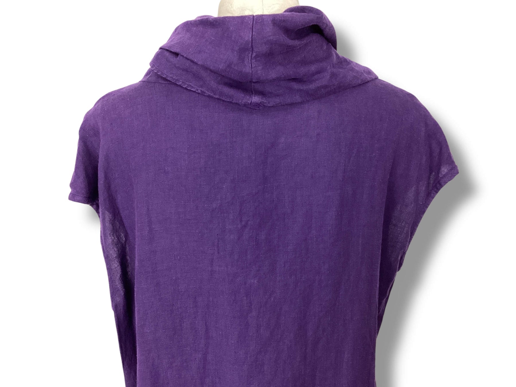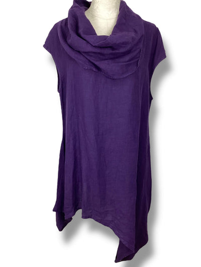 Regular price $46.95Tunic or dress with funnel/cowl neckline. Short cap sleeves. Asymmetrical hemline. The color is an eggplant purple color. New wi5 tags but has natural flaws in fabric.