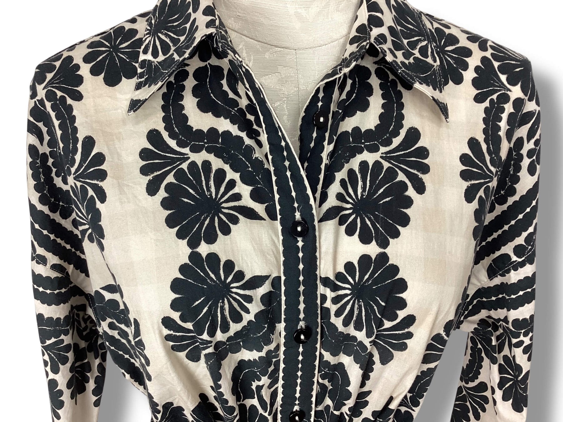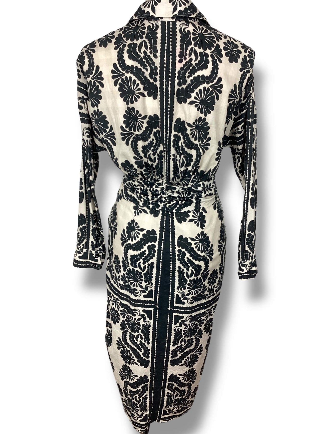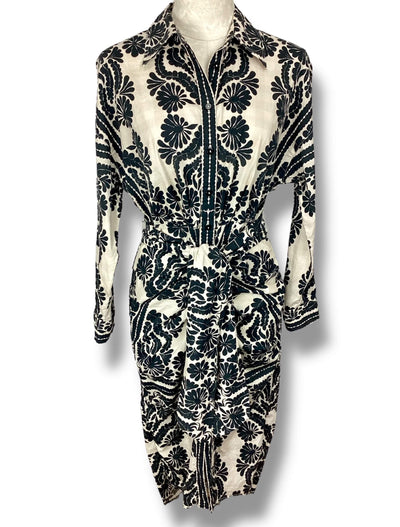 Antonio Melani Roxanne Printed Tie Waist Long Sleeve Midi Dress size 4 Collar Neckline