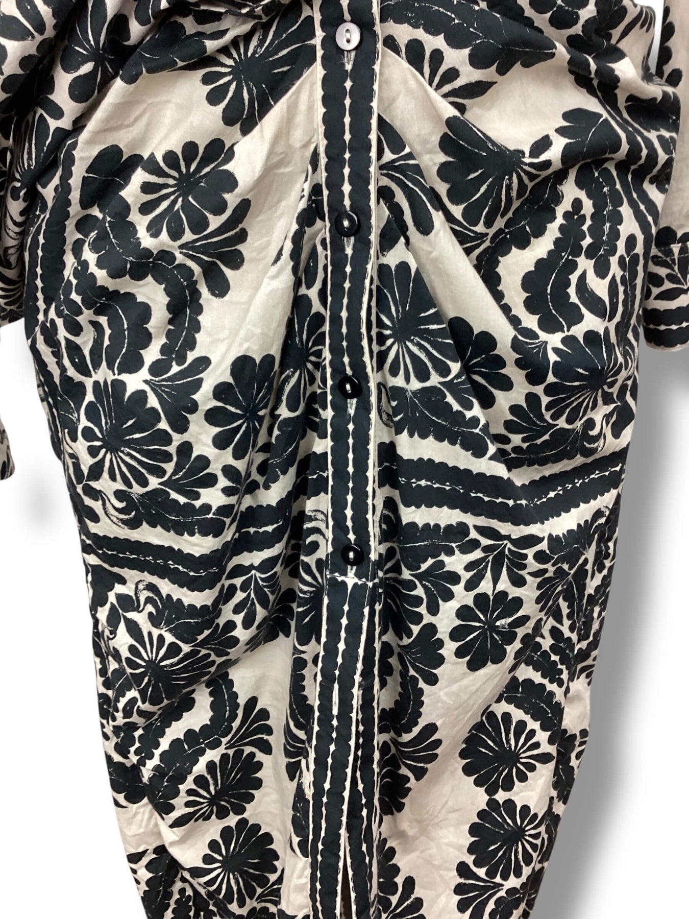 Regular price $57.95Button front wiggle dress with sewn on tie. Light cream buffalo plaid with bold floral print over top. lightweight cotton fabric. Gently used. Stunning!