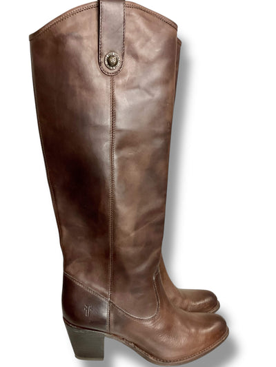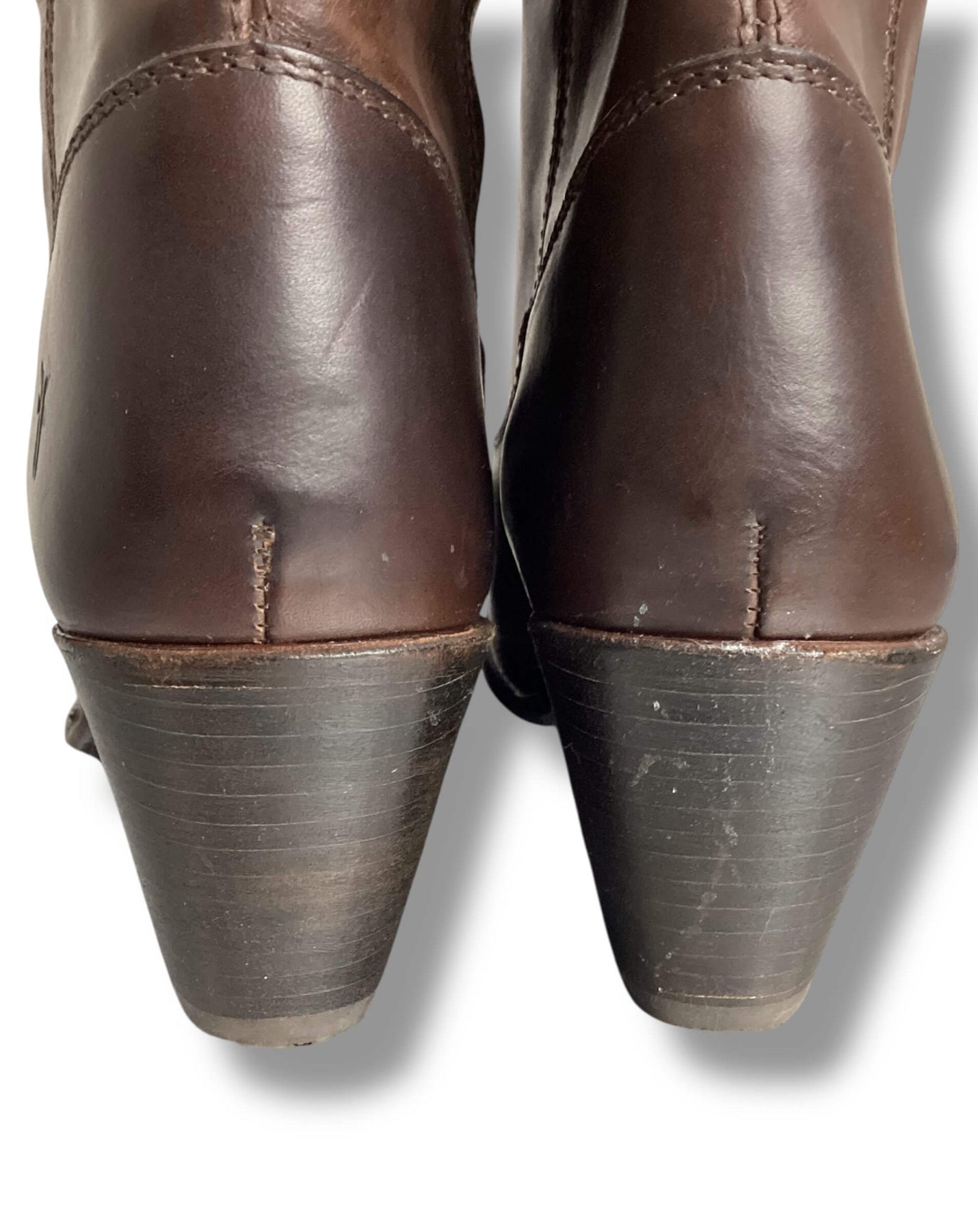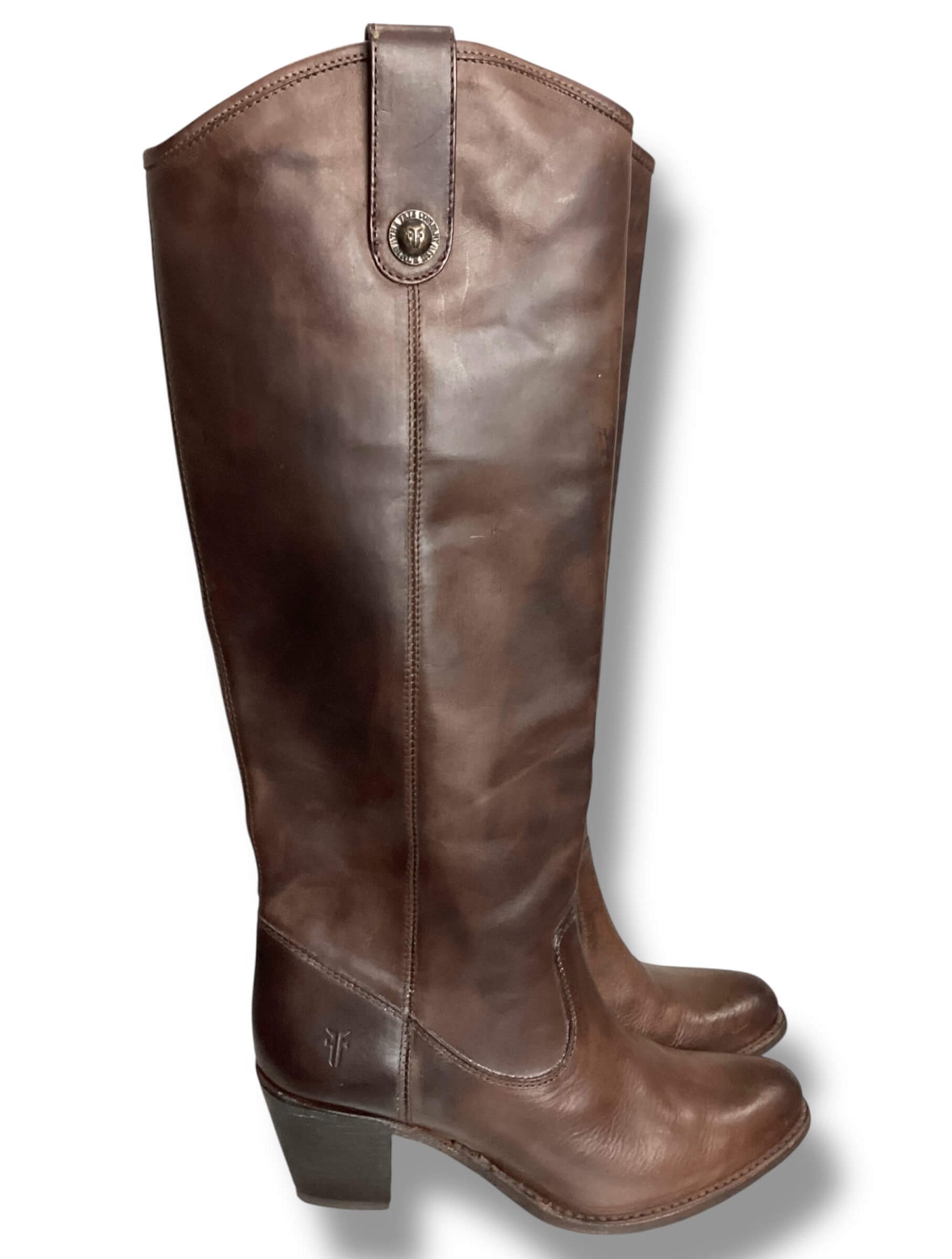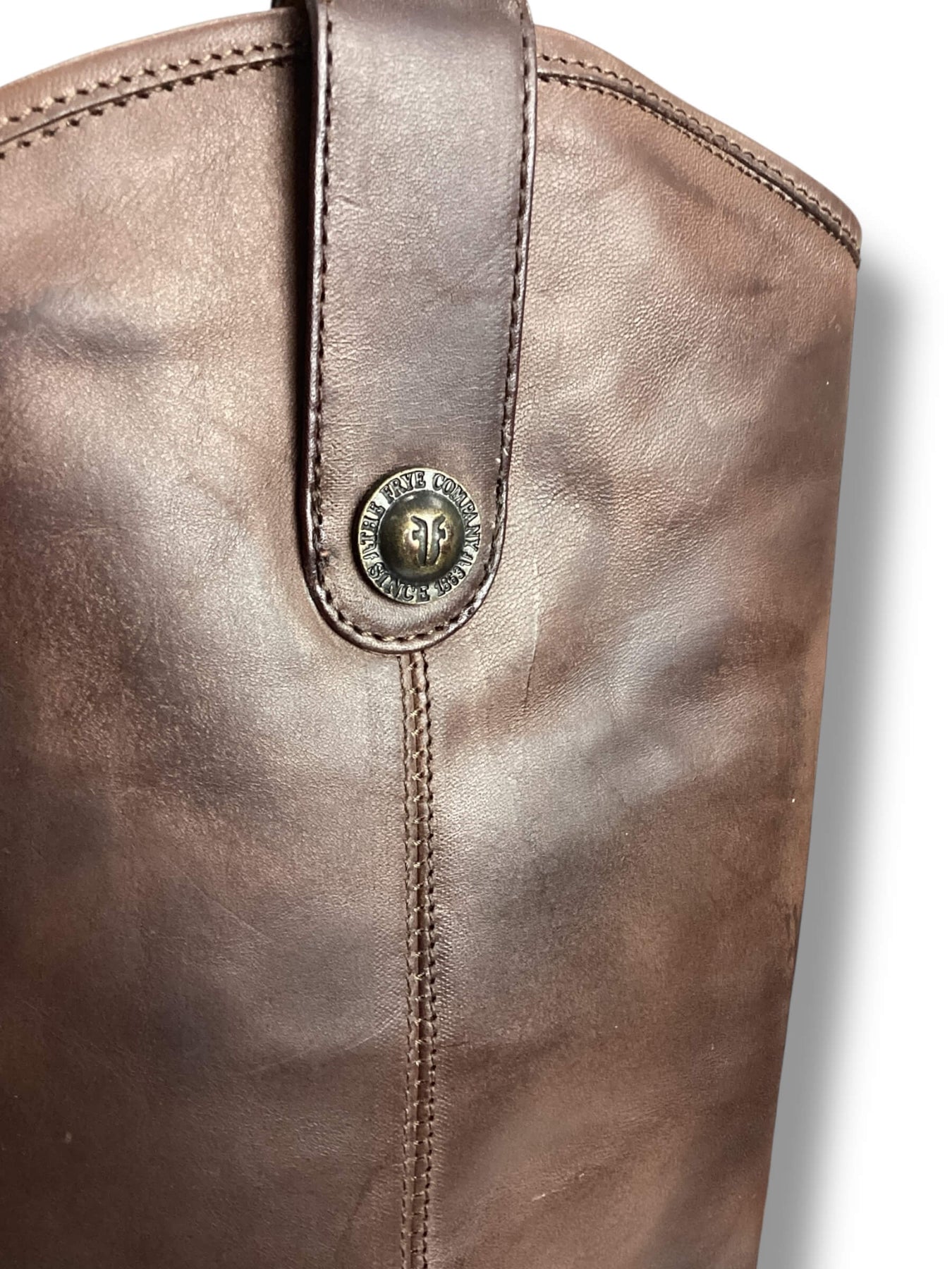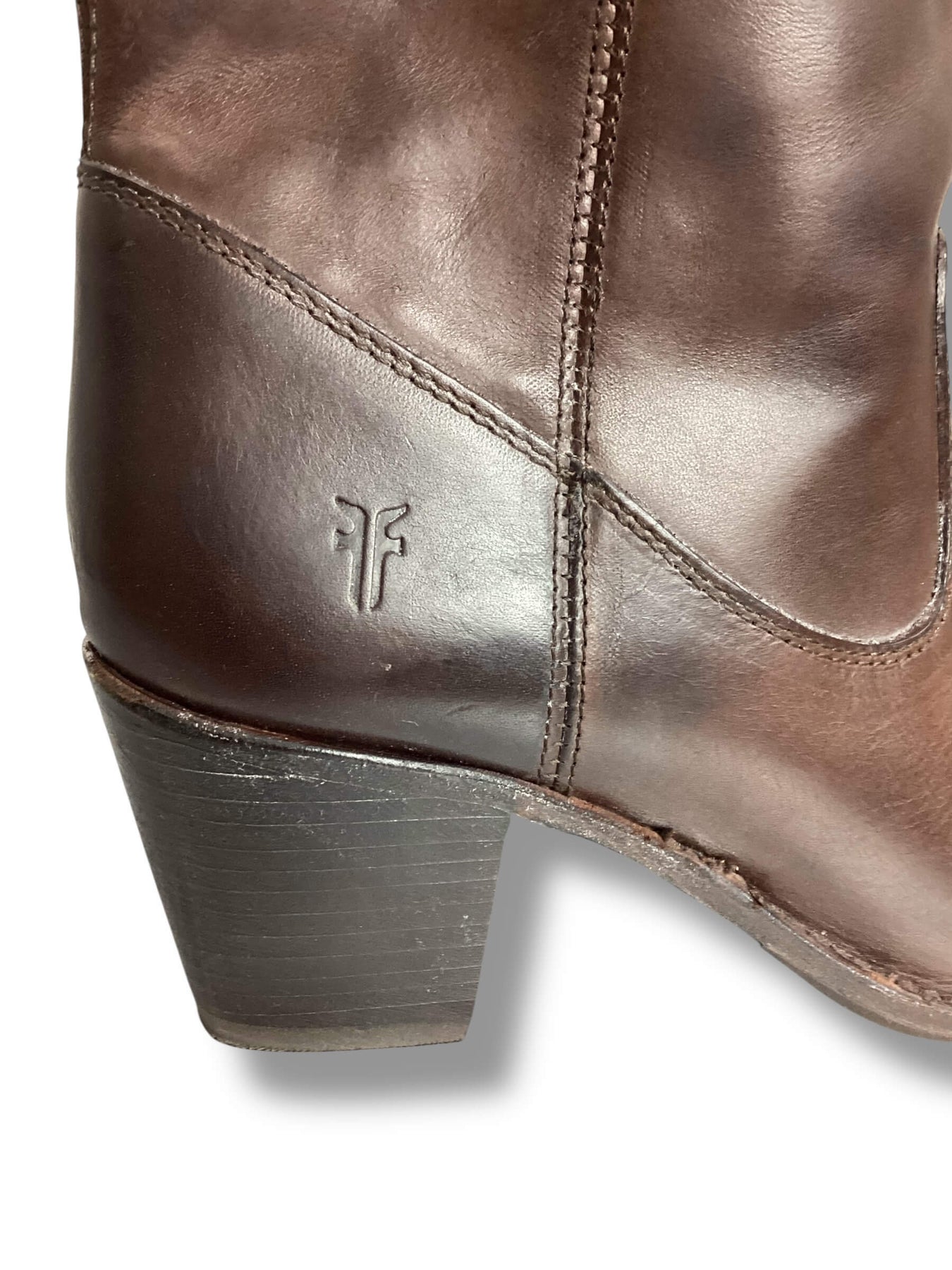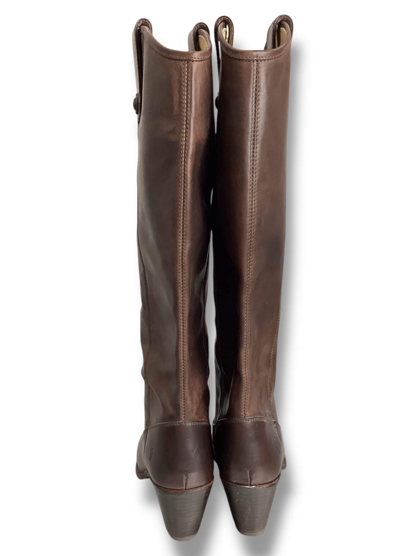 Frye Tall Brown Leather Heeled Boots size 8 womens