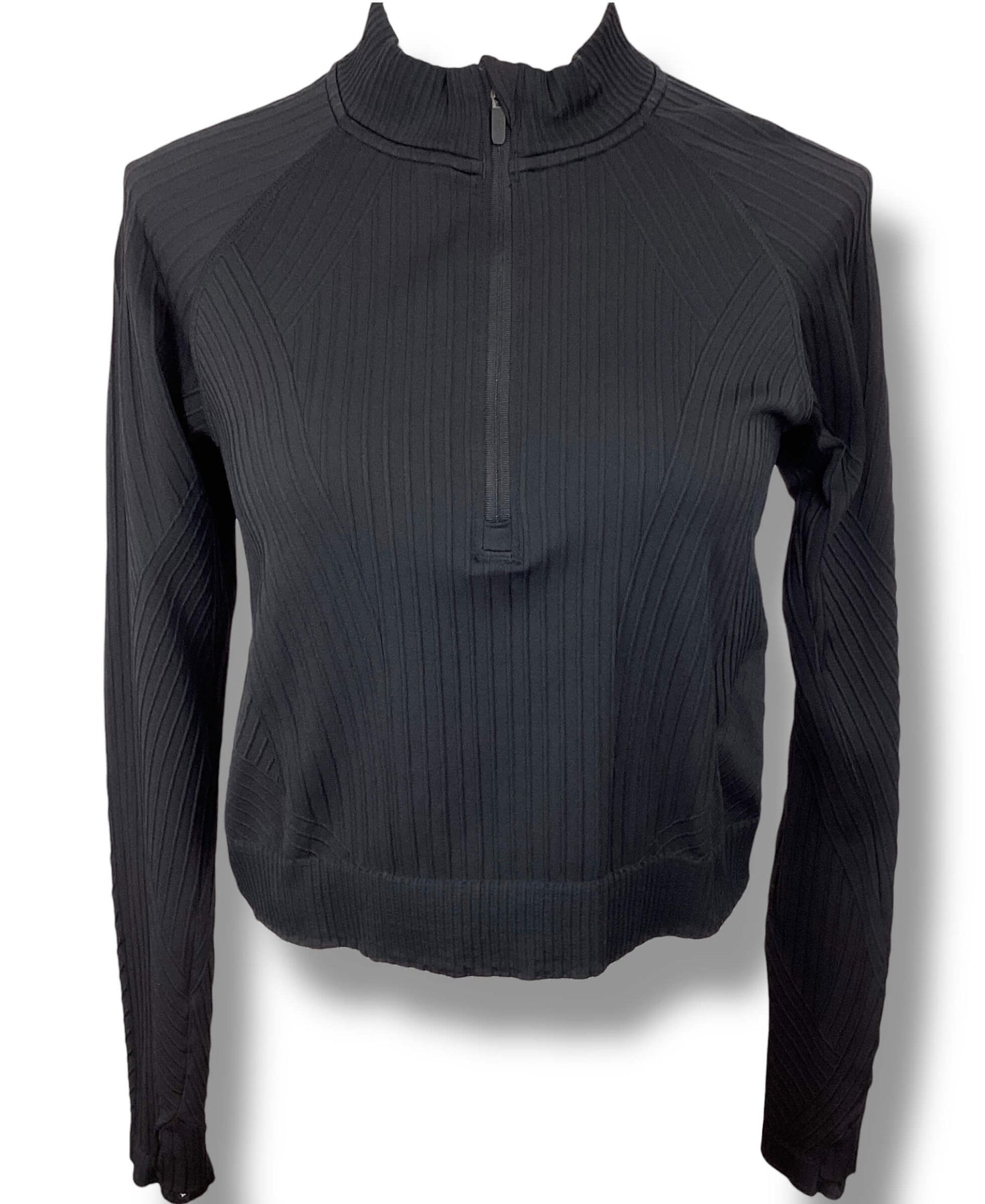 lululemon Black Ribbed Rest Less Crop Top size 6 Long Sleeve