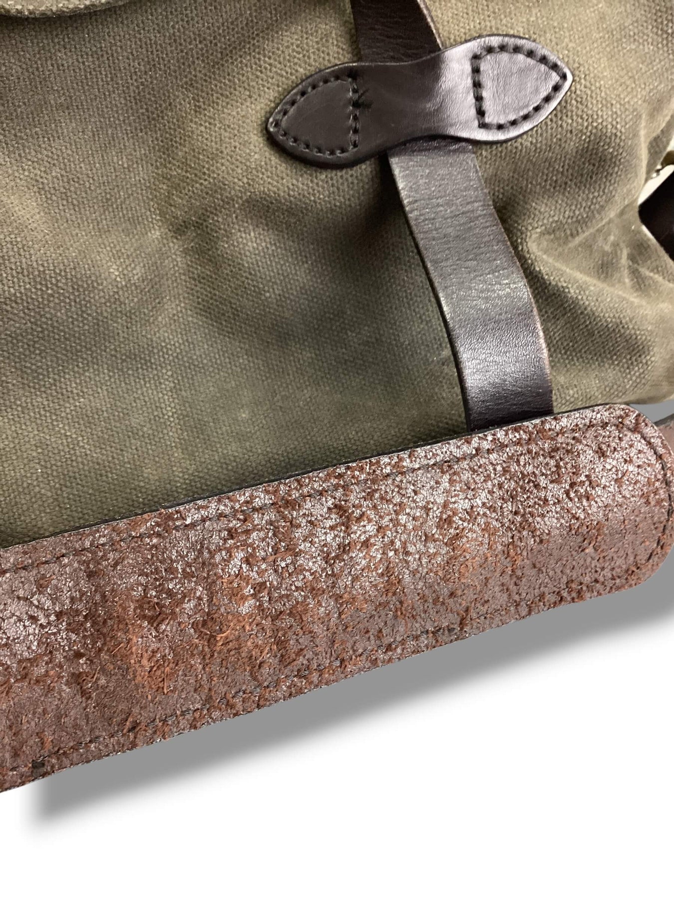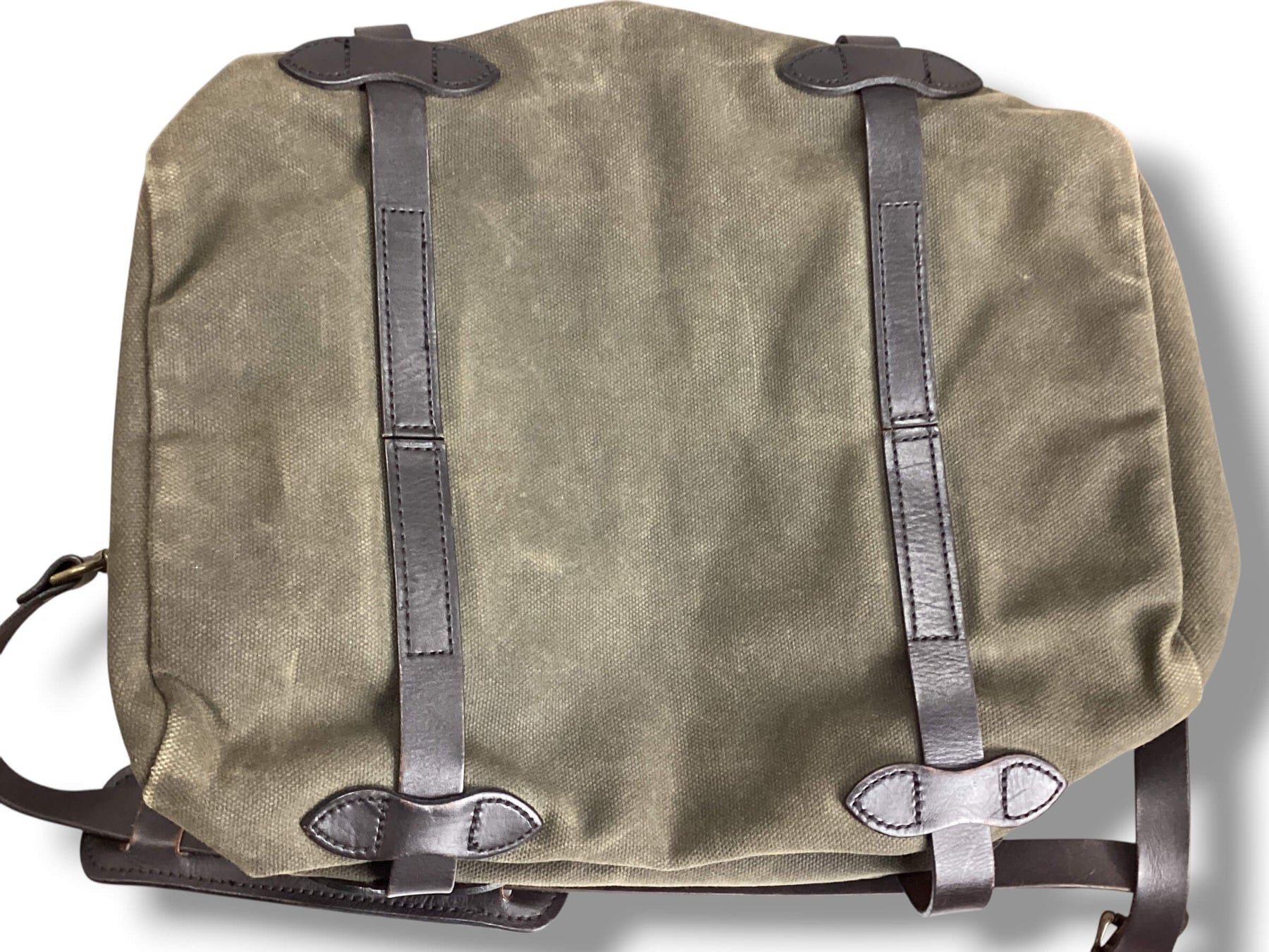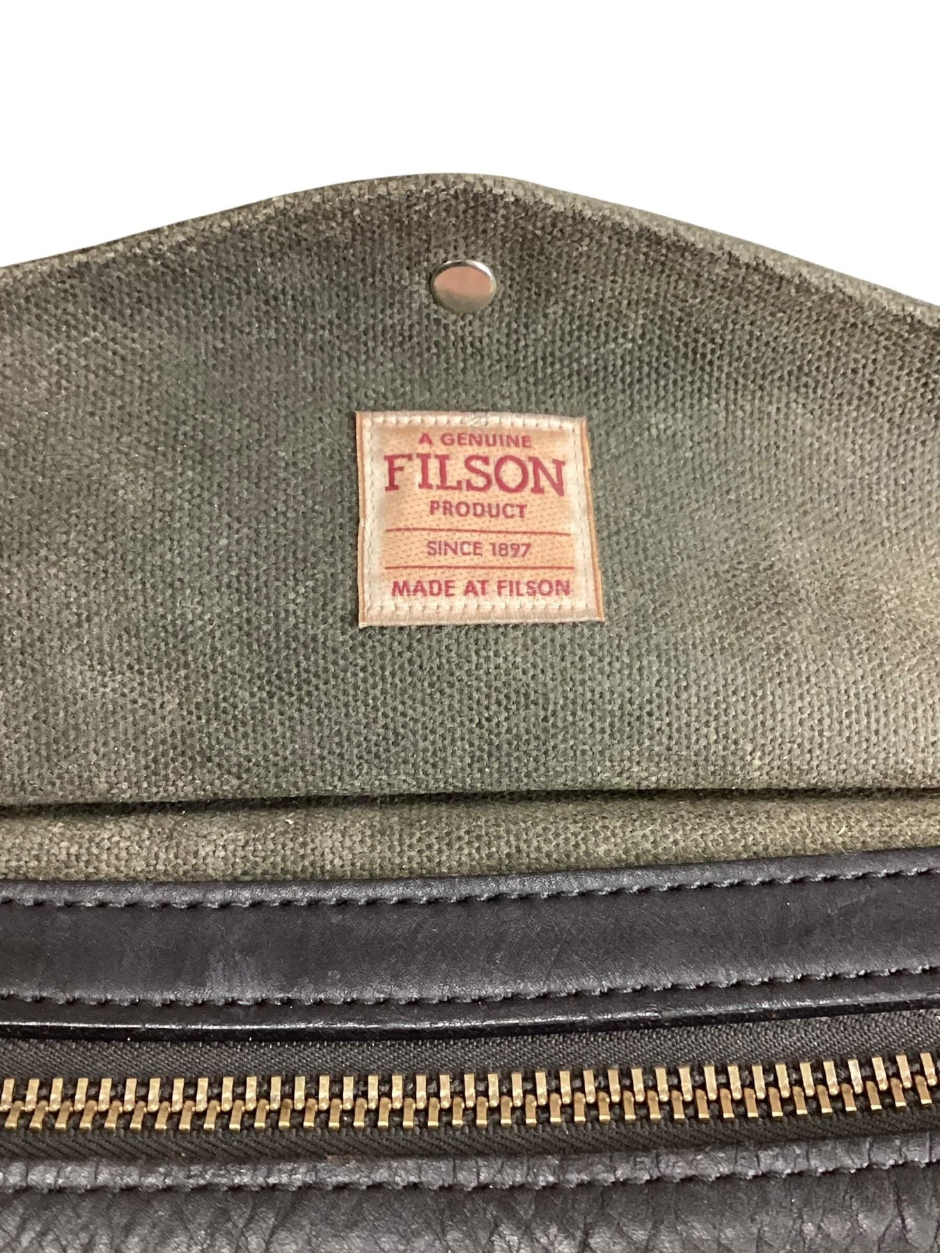 Made from Filson’s abrasion-resistant, lightly-waxed Rugged Twill, this bag is built to weather life on the move. The Bridle Leather handles and shoulder strap—vegetable-tanned in Pennsylvania—make carrying a breeze, while two interior stow pockets and a protective storm flap keep your gear safe, dry, and secure. Flaw on one strap. Please review pics.