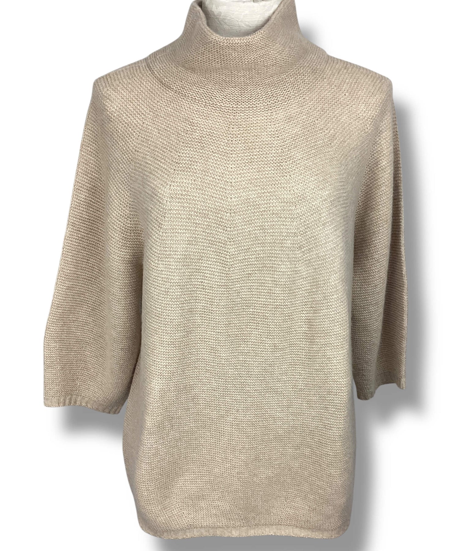 Mock neck cropped sleeve sweater. Zig zag knit pattern. Classic quality wardrobe piece. Lightly used.