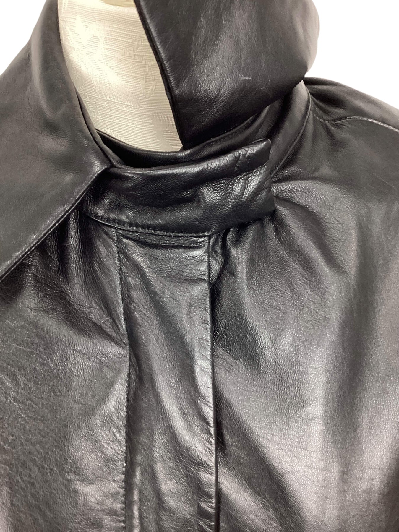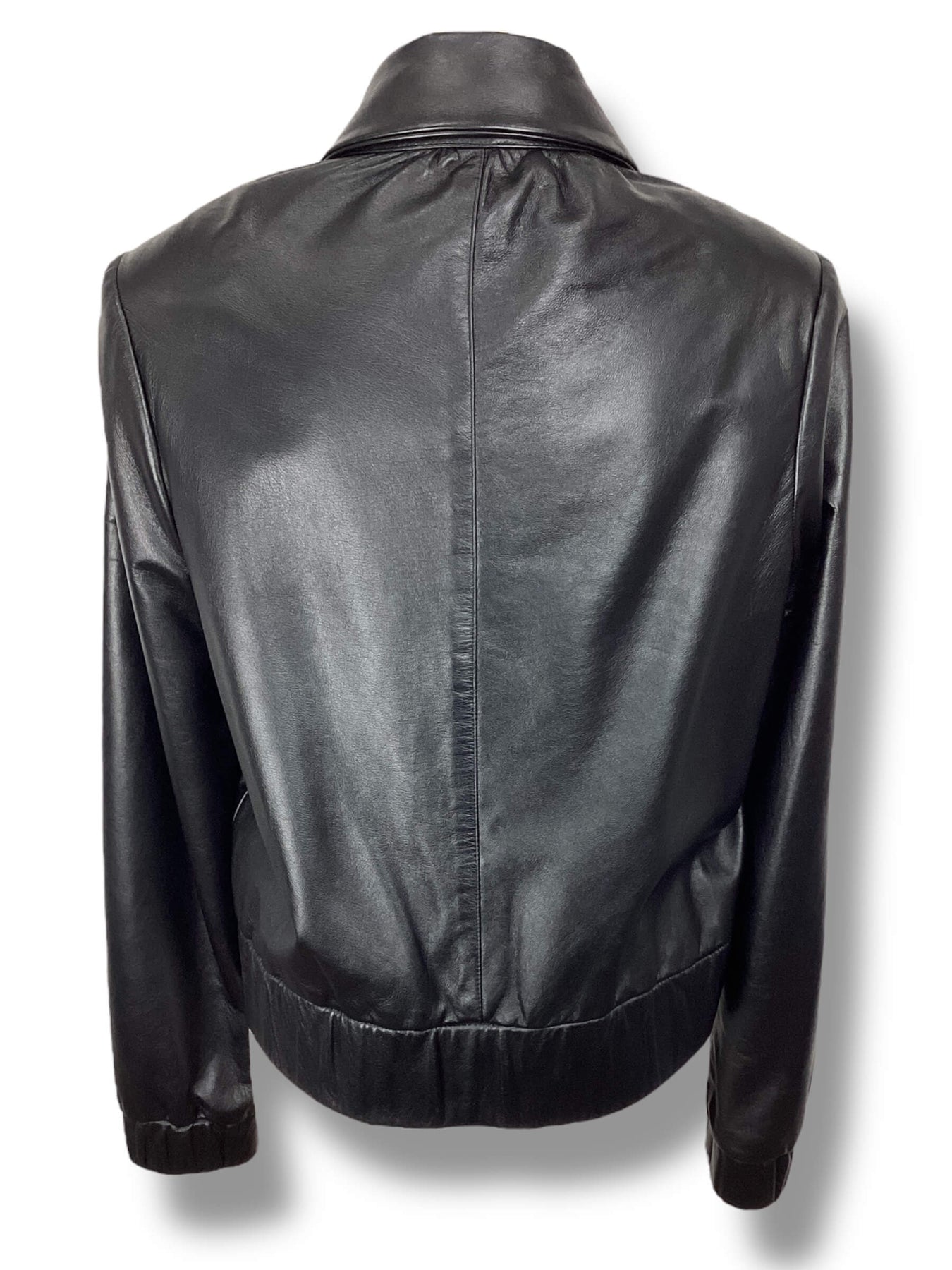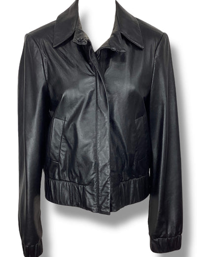 Marie Inez Black Leather Jacket size 10 bomber collared