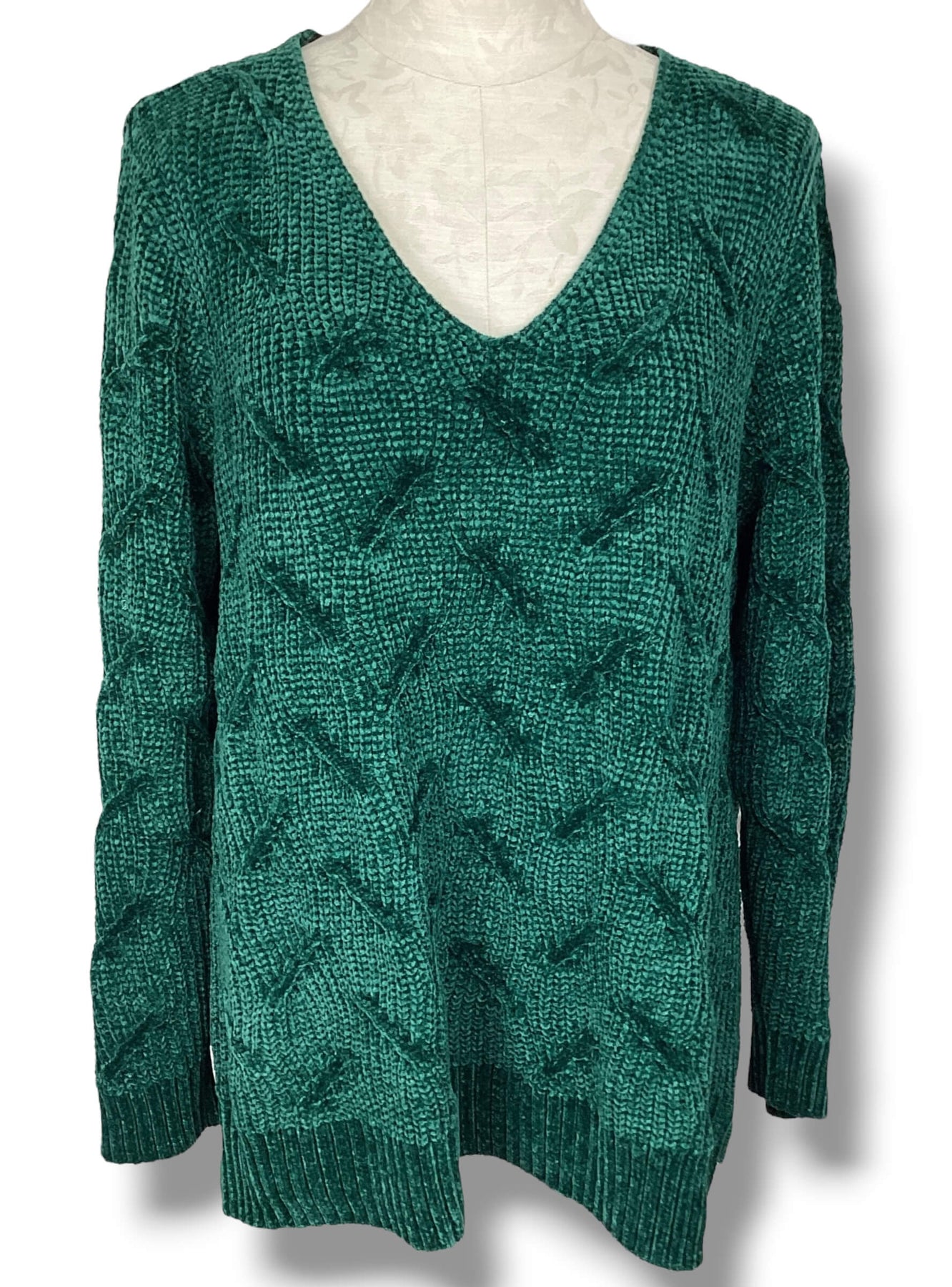soft surroundings Emerald Green Chenille Cable Sweater size XL