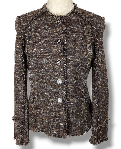 St. John Collection Brown Gray Tweed Cardigan Jacket size 4 Button Front